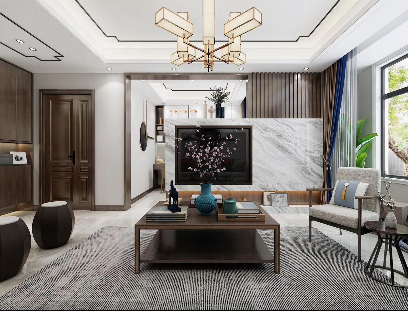 大眾上河灣145平三室兩廳兩衛新中式風格裝修,新中式風格,既能滿足父母對中國風的喜愛,又能滿足年輕人對現代感的需求。