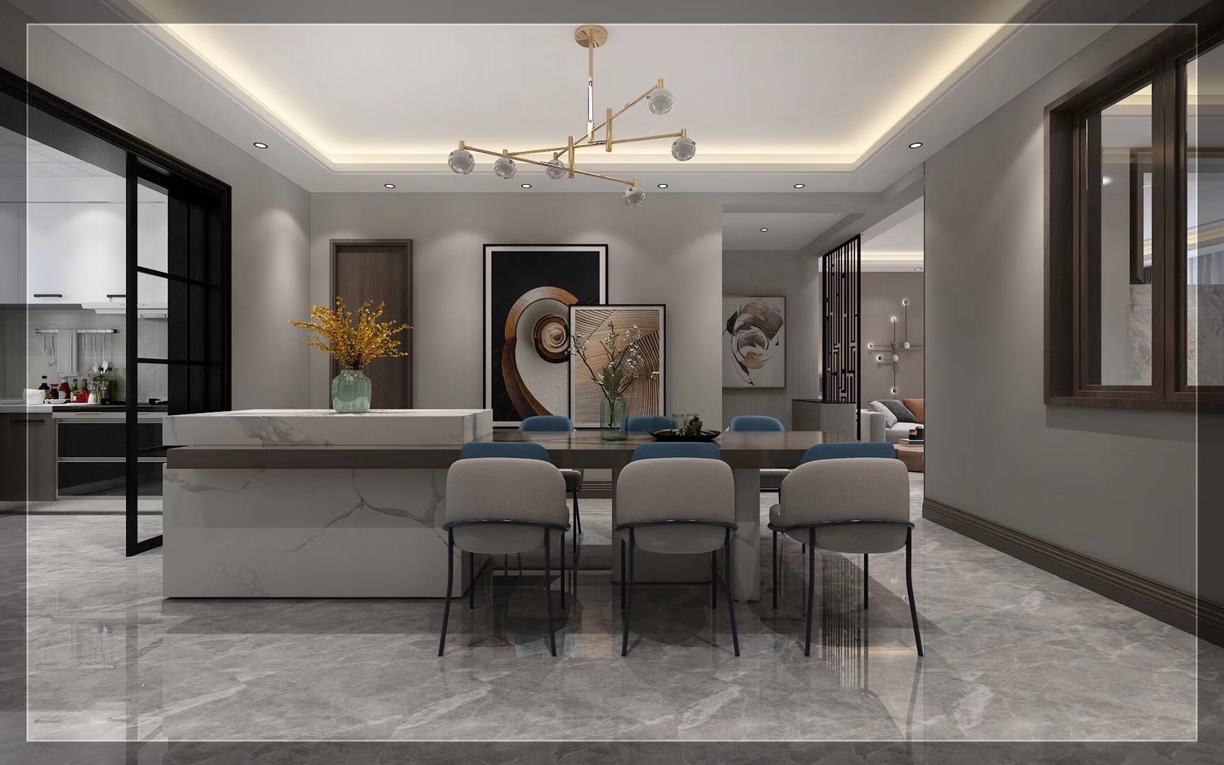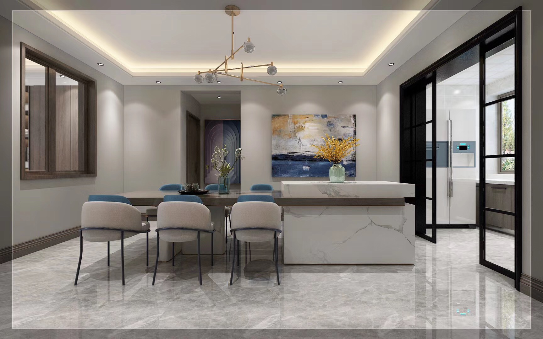 國信中央新城135平三室兩廳兩衛現代簡約裝修,現代風的設計,簡單又不失大氣,細節中也流露著時尚的巧思,讓您的家永不過時。