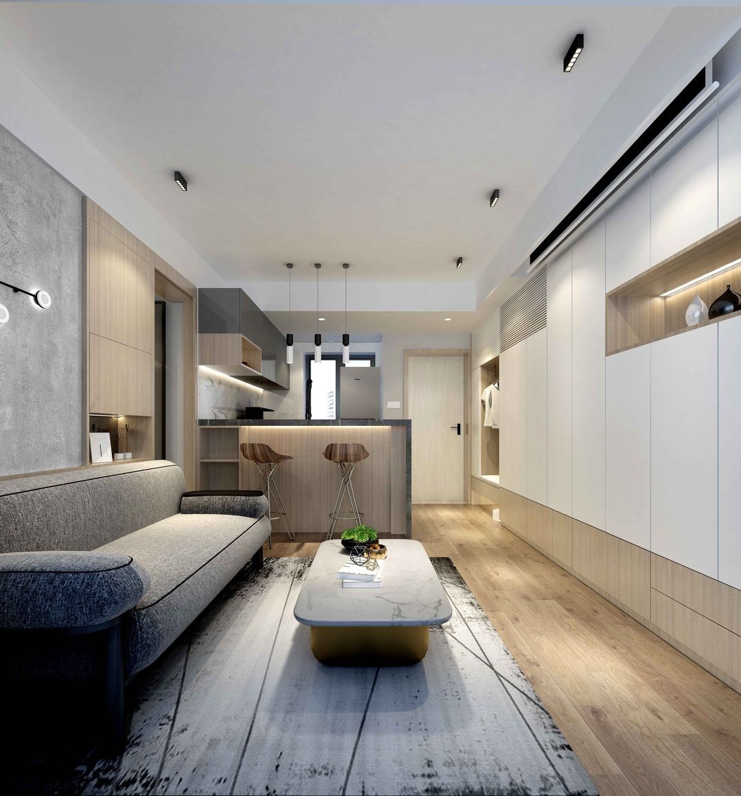 入戶門位置調整縮小,增加一整面的收納柜,滿足海量收納需求。