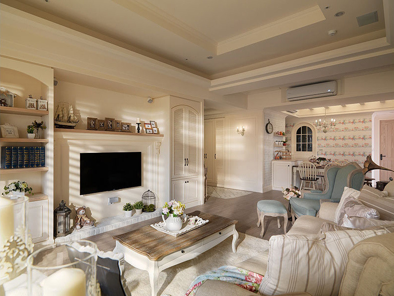 嵌入式空調(diào)的設(shè)計(jì)使得壁掛機(jī)顏值頓時(shí)升高一大截。層高較高的房子多級(jí)吊頂做出了空間的層次感。