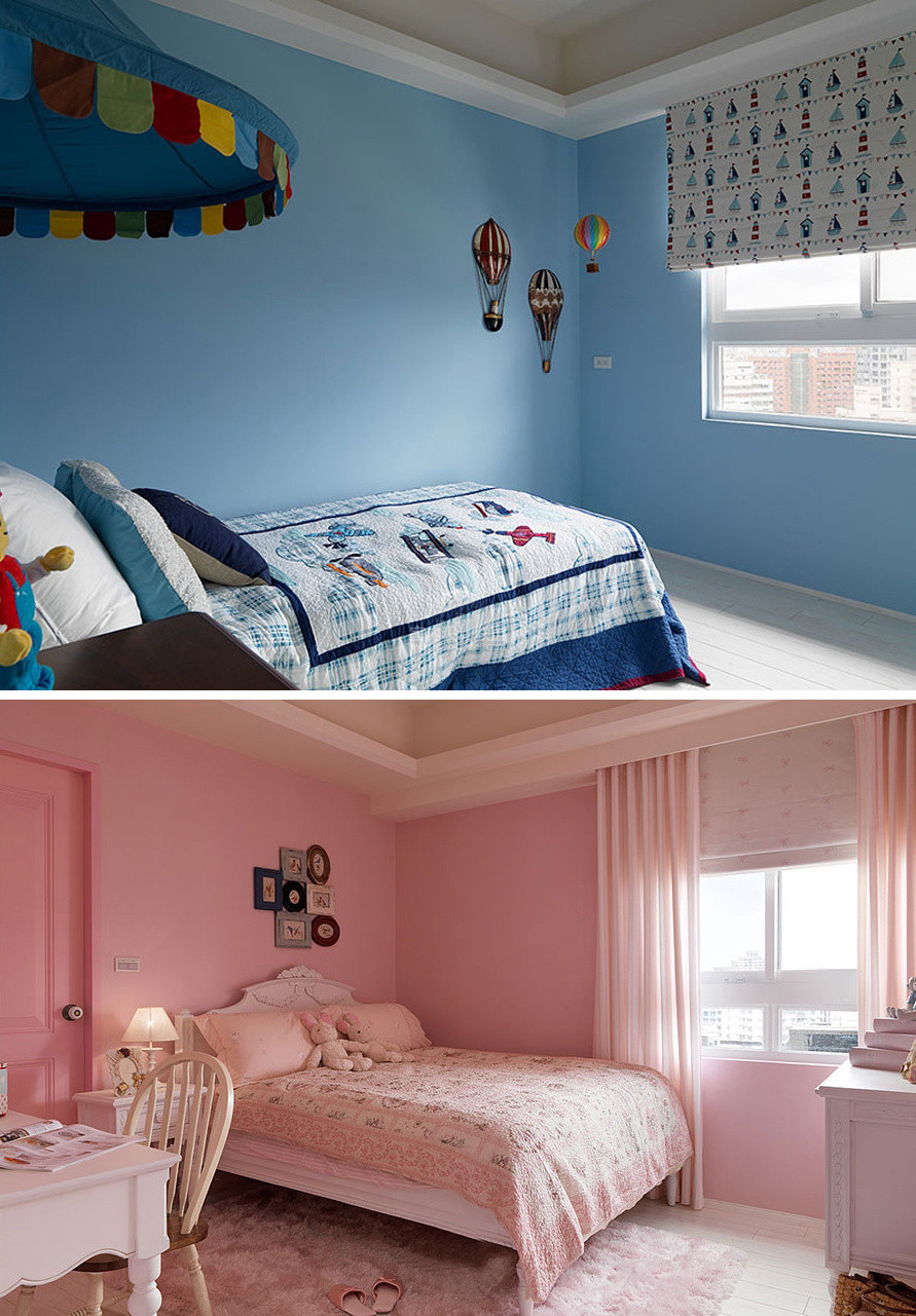 整體天空藍(lán)的男孩房,夢(mèng)幻般的女孩房。